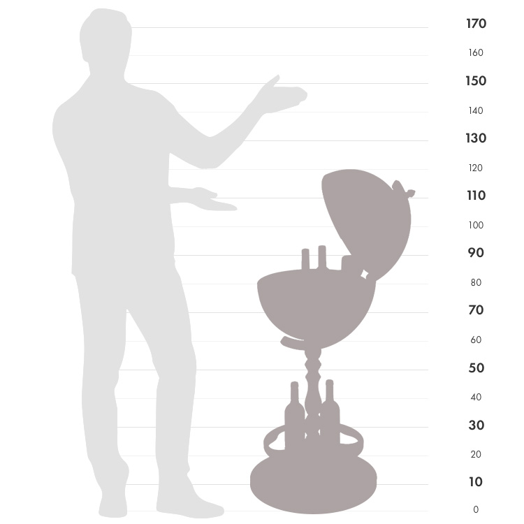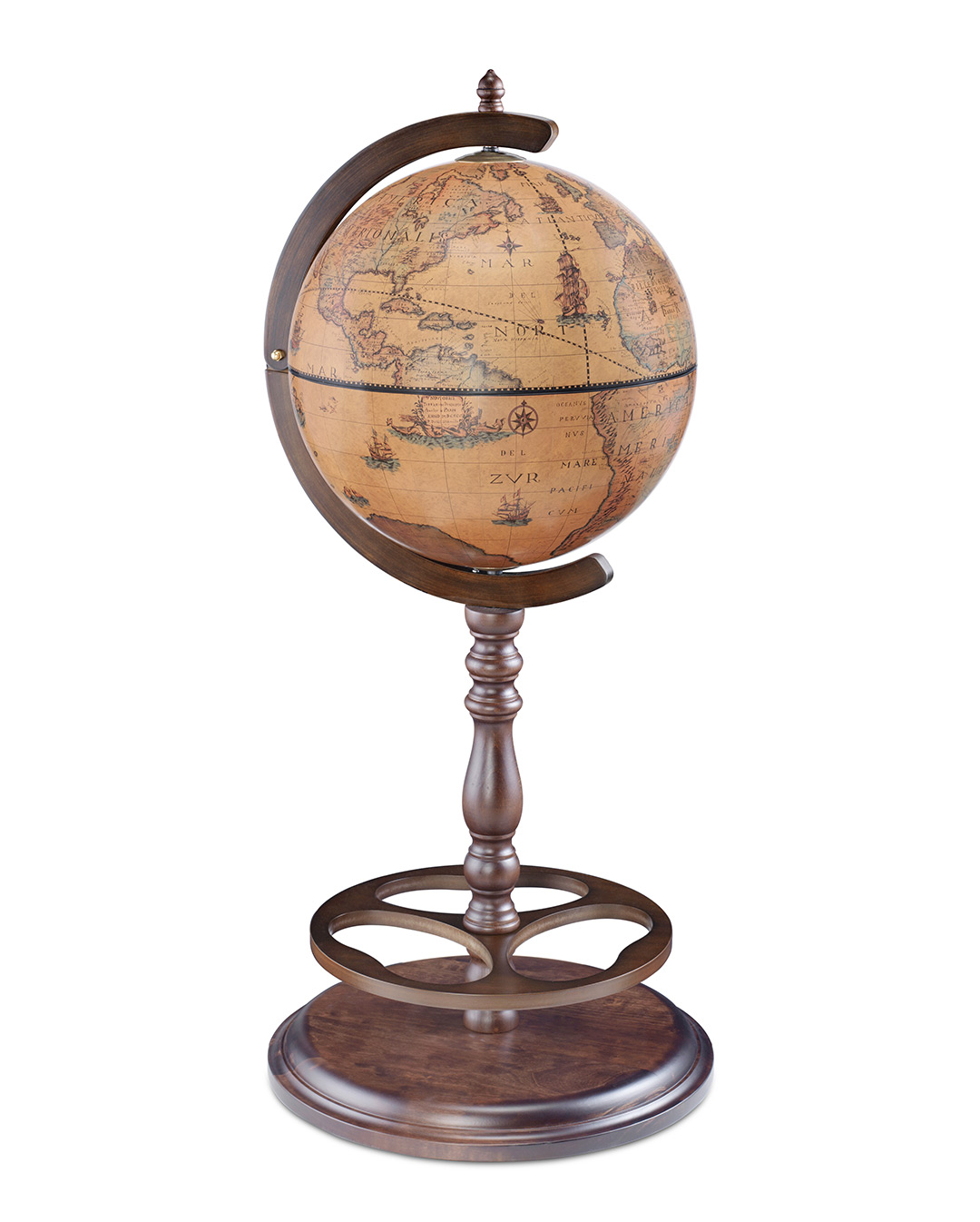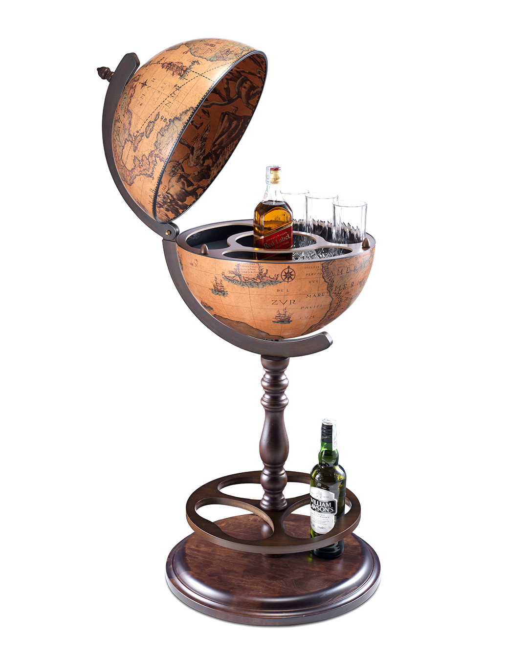 Stalak od masivnog drva. Police i meridijan su od ručno obojenog MDF-a.