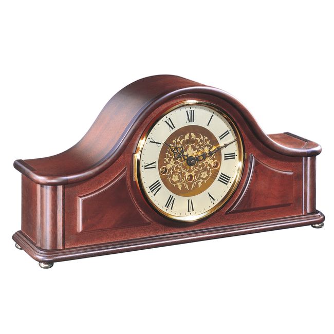 Mehanički stolni sat s kućištem od masivnog drveta. Mehanizam ''Hermle'' Njemačka sa pogonom na ključ (8 dana).Westminster 4/4 melodija svaka četvrt sata i otkucavanje punog sata.Mahagoni završna obrada.