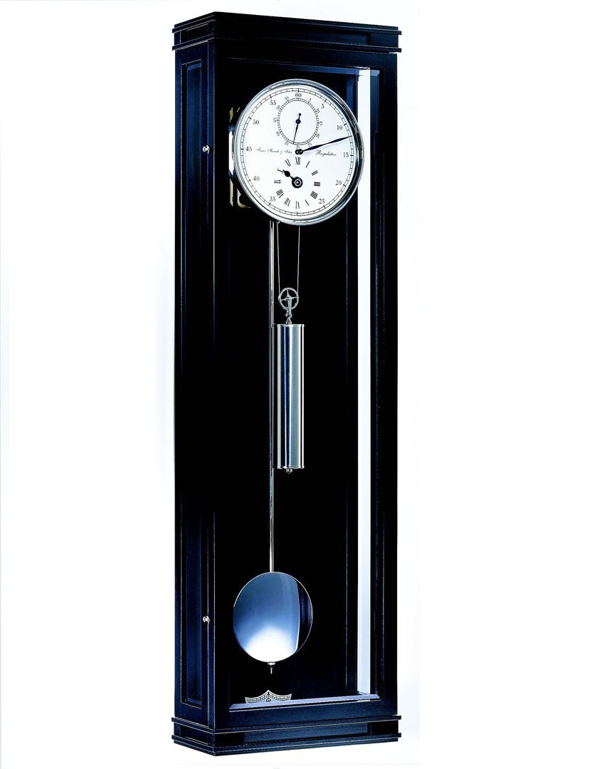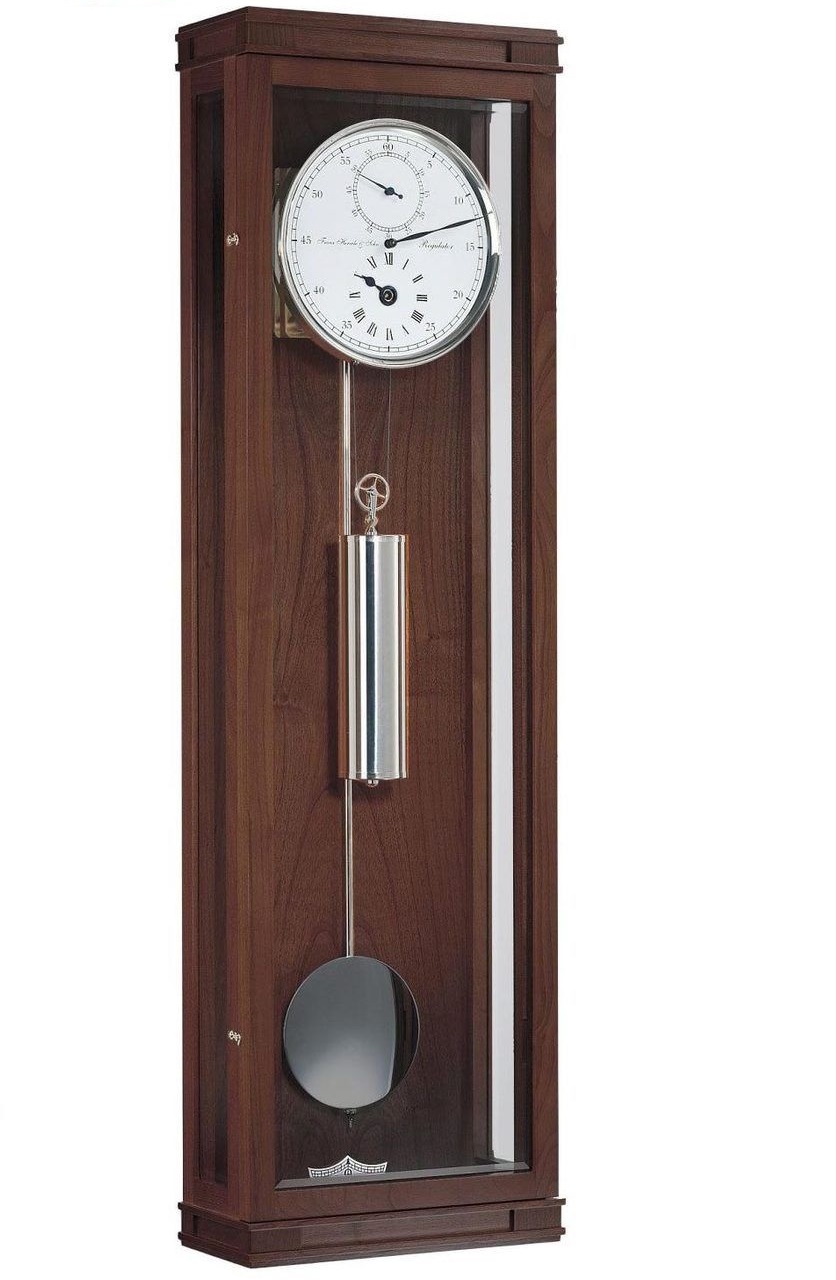 Mehanički zidni sat s kućištem od masivnog drveta.Mehanizam ''Hermle'' Njemačka sa pogonom na uteg preko ključa (8 dana).Završna obrada: trešnja, orah, crna.