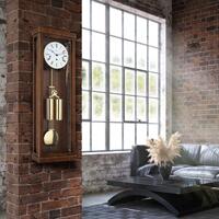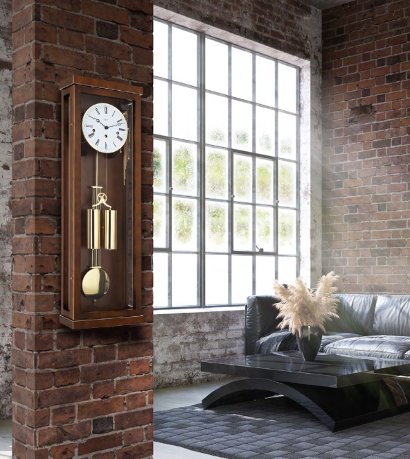 Moderan zidni sat s kućištem od masivnog drveta, te prednjim i bočnim staklom. Mehanizam ''Hermle'' Njemačka sa pogonom na ključ (8 dana). Automatsko noćno isključivanje i poluga za prigušenje. Westminster 4/4 melodija svaka četvrt sata i otkucavanje punog sata.![]()
