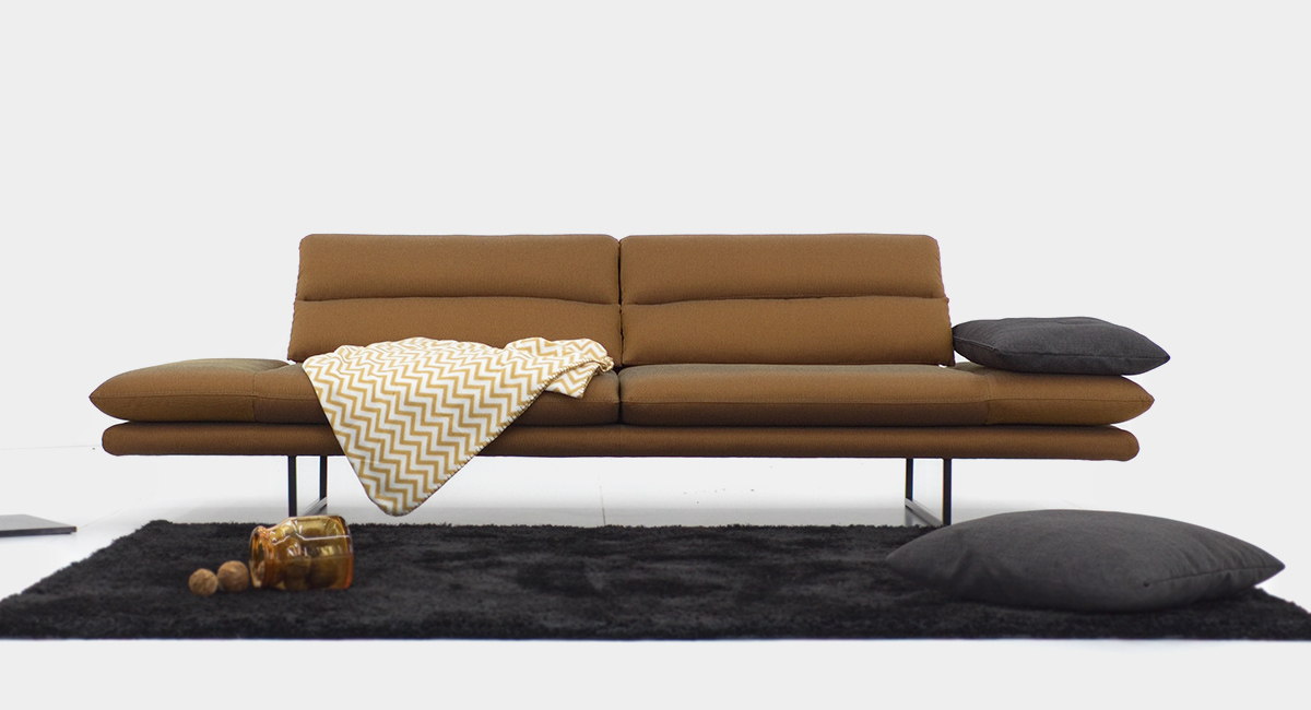 SOFO VOLO, sa svojim izuzetno tankim sjedalom i naslonima za ruke, predstavlja se kao suptilan i elegantan model s minimalističkim dizajnom. Posebnost naslona za ruke je mogućnost postupnog podešavanja kuta naslona i korištenja u željenom položaju kao naslon za glavu. Širok raspon elemenata dostupan je u četiri dimenzije (XS, S, M, L, XL). Kupac može slobodno birati i kombinirati različite elemente zajedno.